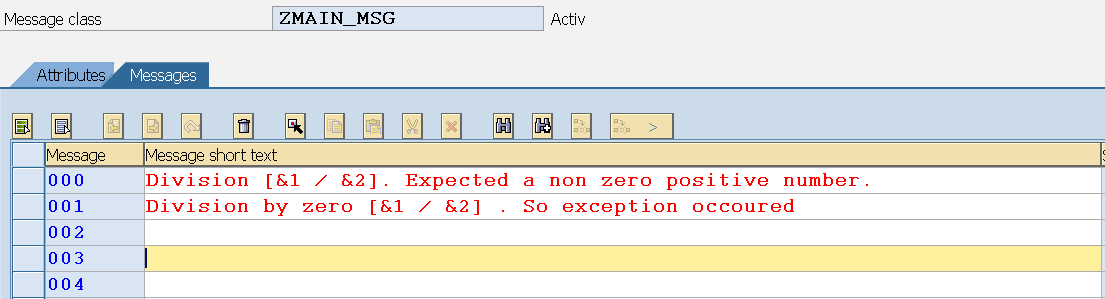 Step1. So here we have the message class with two message texts 000 and 001.